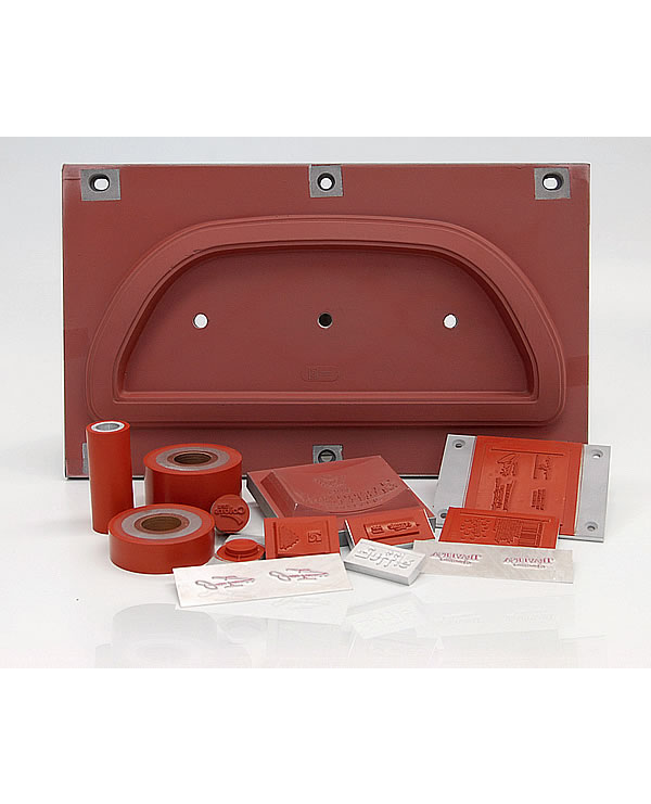 Se moldean copiando la curvatura de la pieza a estampar, vulcanizados sobre una base metálica plana en caso de pequeñas curvaturas, o sobre una base conformada para mayores desniveles. Haciendo un pedido inicial de cuatro o seis piezas, las bases usadas pueden ser vueltas a vulcanizar sin afectar la producción.